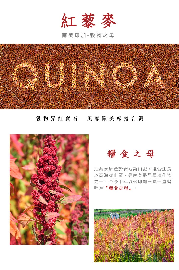 • 紅藜麥是祖傳老品種,源自玻利維亞