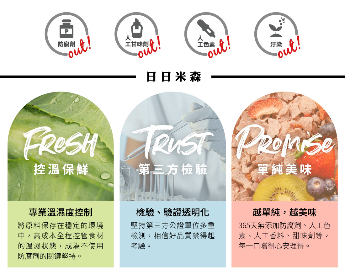 • 嚴選有機食品,完全採用有機農法種植作物,不使用農藥、化學肥料及任何人工添加物。有機農法:從嚴格選種開始,到淨化土壤的管理,使大地不受重金屬、化肥、農藥、及除草劑的汙染,給予人們最安全最有生命力的作物,使身體遠離現代精緻飲食及化學添加物所帶來的負擔